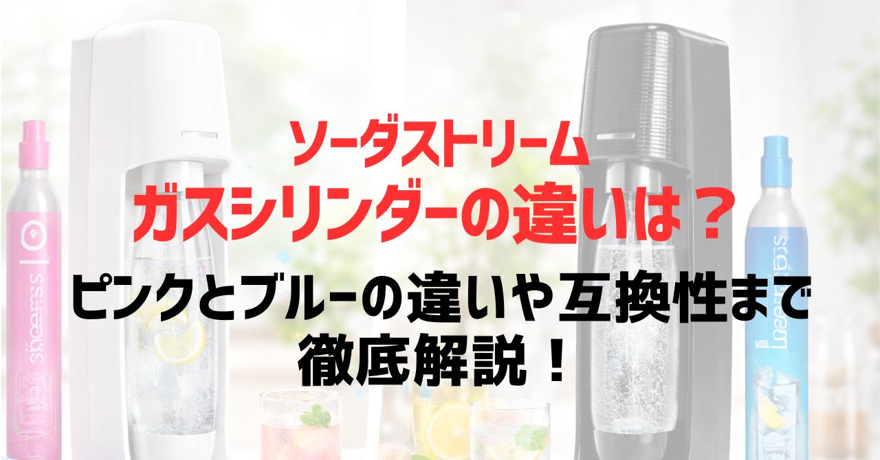 ソーダストリームのガスシリンダーの違いや、ピンクとブルーは何が違うのか相換性についてもご紹介します。